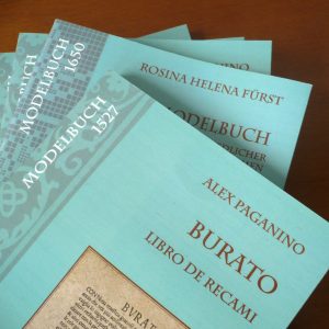 I quattro libri di una delle più note e antiche raccolte rinascimentali italiane di modelli per ricami a fili contati (punto scritto e punto croce), da eseguire sul “burato” o canovaccio, e disegni di ricamo e ornato, per le vesti delle gentildonne e dei gentiluomini dell’epoca.