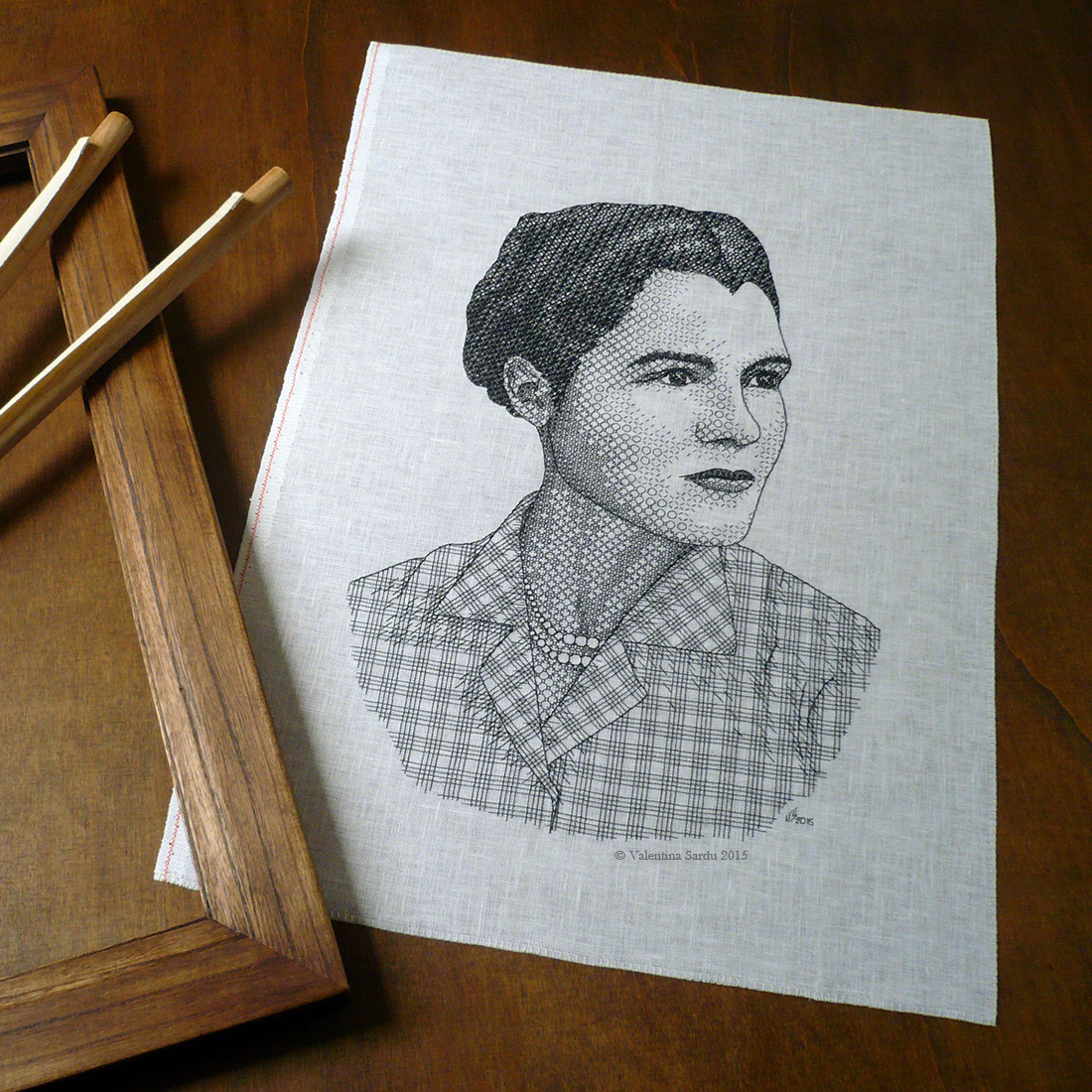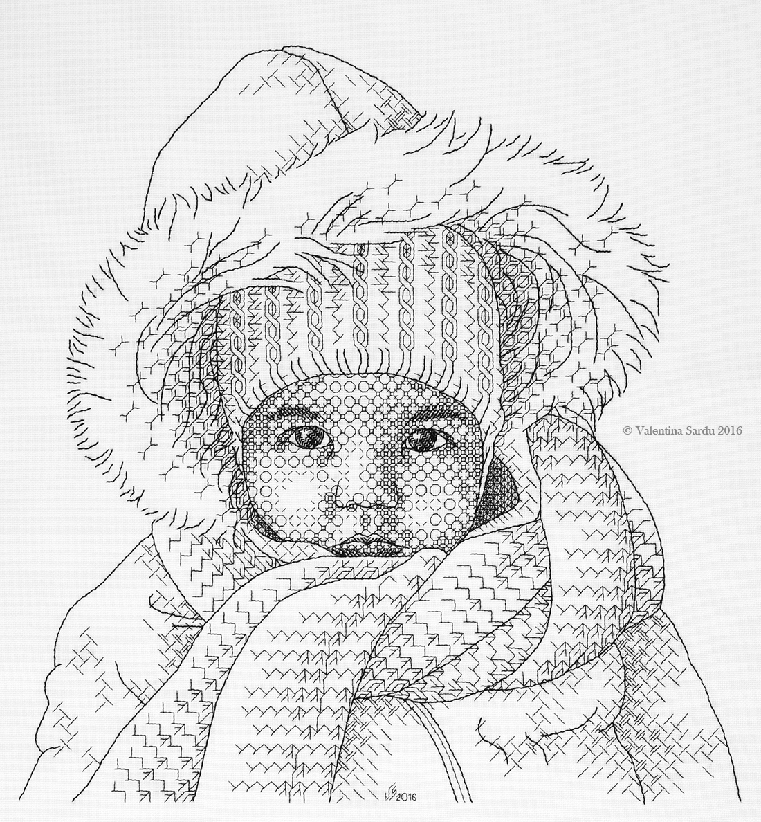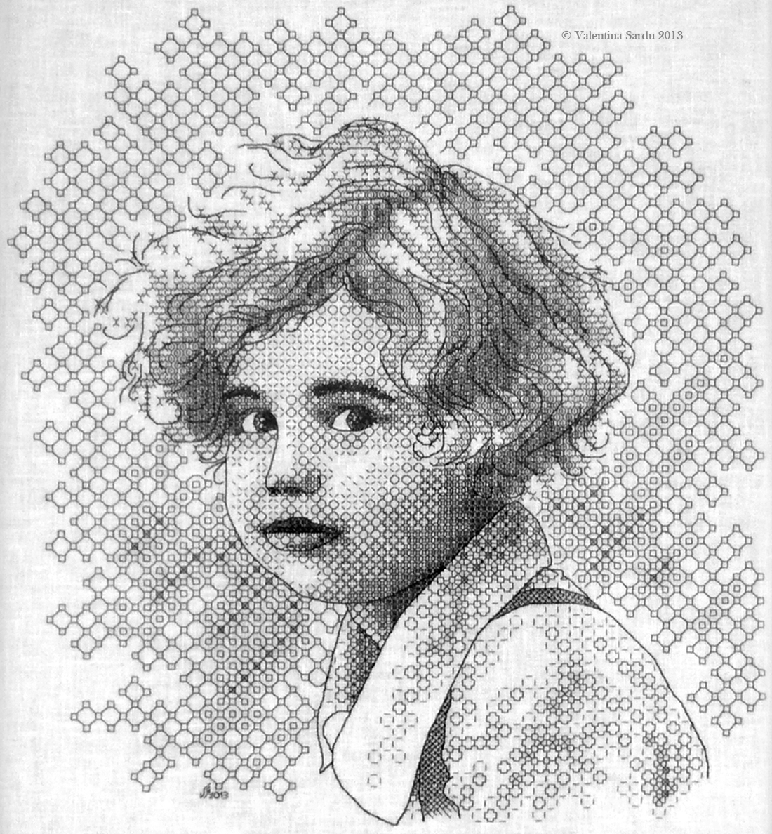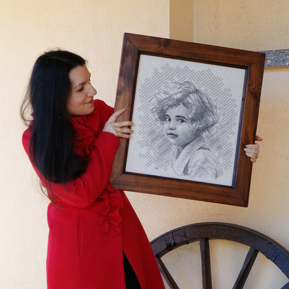 Ricami blackwork. Filo di cotone nero su lino a trama regolare.